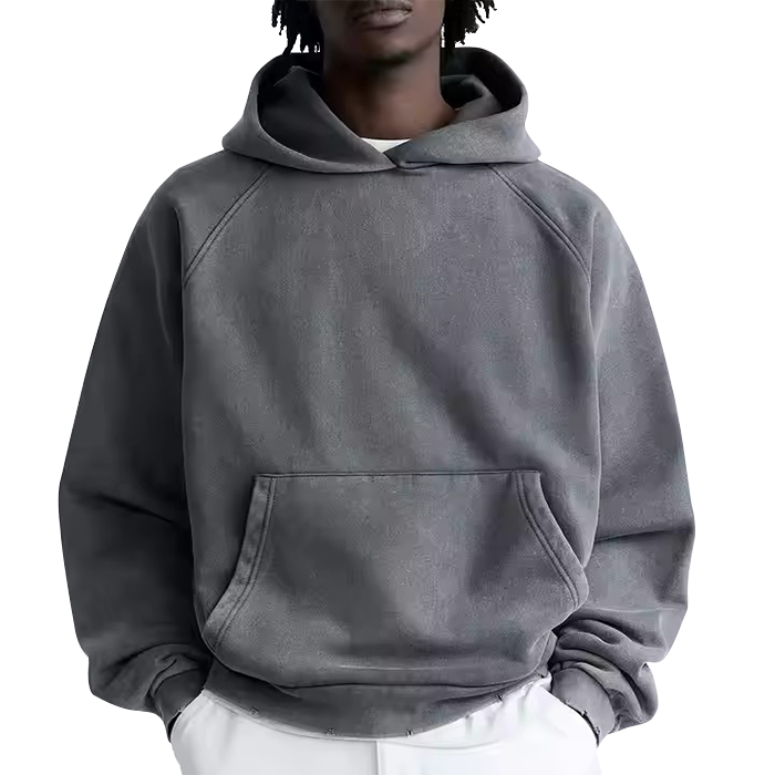 เสื้อฮู้ดดี้ผู้ชายแบบวินเทจทรงปกติ ผ้าคอตตอนผสม ย้อมสีแบบแอซิดวอช หนานุ่มสำหรับฤดูหนาว ผลิตตามสั่งจากโรงงาน
