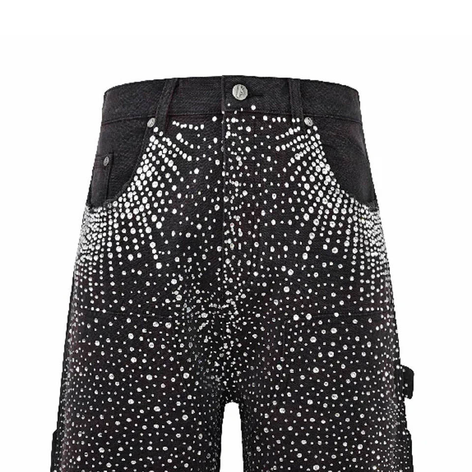 กางเกงขาสั้นผ้ายีนส์สำหรับผู้ชายกางเกงขาสั้นลายกากเพชรแบบลำลองสำหรับซักแบบกรดไซส์ใหญ่พิเศษออกแบบได้ตาม Y2K