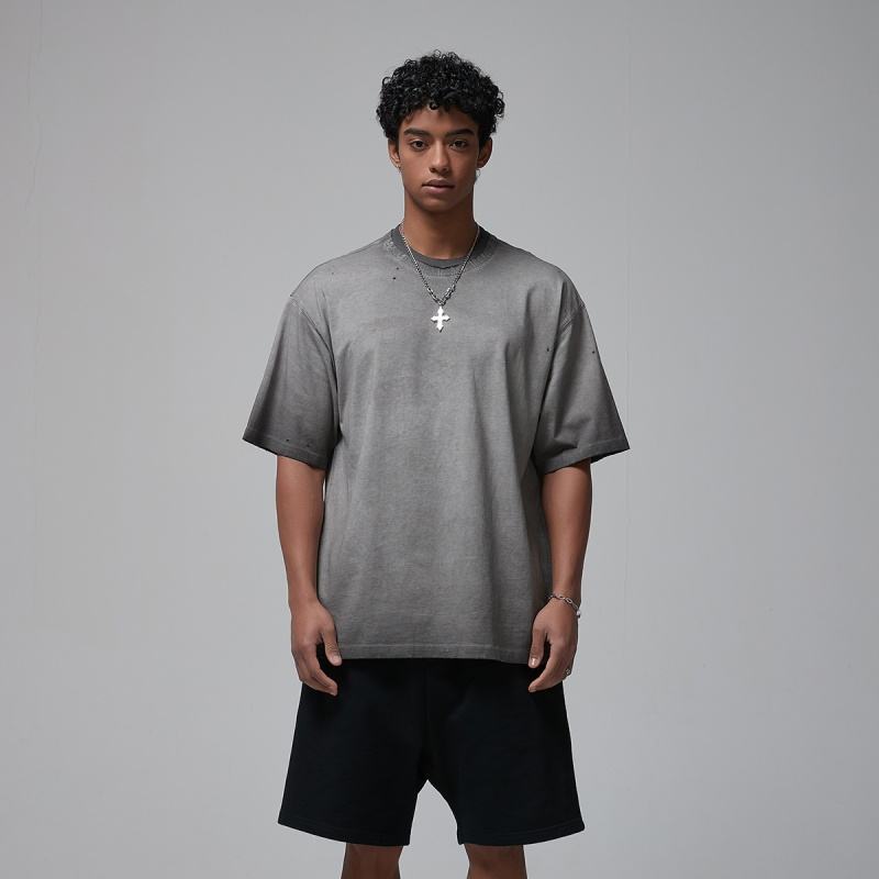 Manufacturer's Custom Printed Acid Wash Vintage Sun Faded Cropped Boxy Top Heavyweight Oversized Men's T-Shirt Streetwear Style