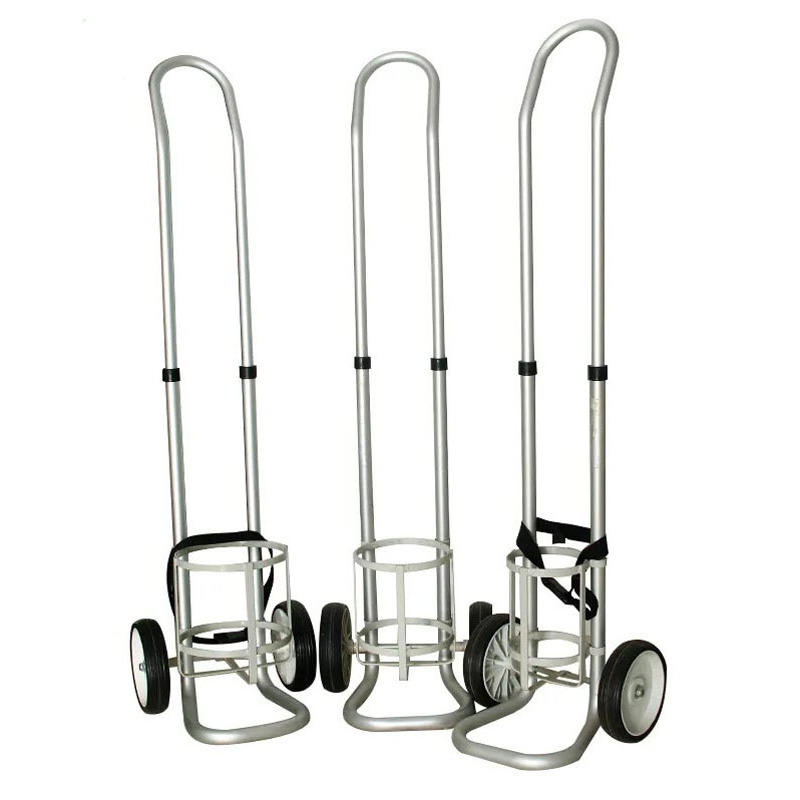 รถเข็นอลูมิเนียมอัลลอยด์แบบปรับแต่งได้จากผู้ผลิต สำหรับถังแก๊สและออกซิเจนขนาด 2/4/8/10 ลิตร หลากหลายขนาดสำหรับใช้กับเครื่องมือ