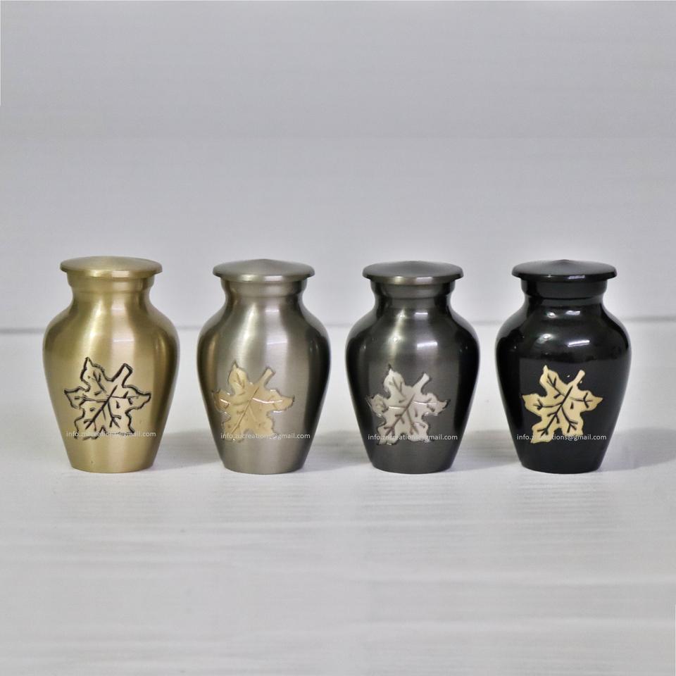 โกศบรรจุอัฐิทองเหลืองแกะสลักทำมือจากผู้ผลิต พร้อมพิมพ์ออฟเซ็ตตามสั่ง สำหรับเก็บอัฐิมนุษย์ ขนาดเล็ก