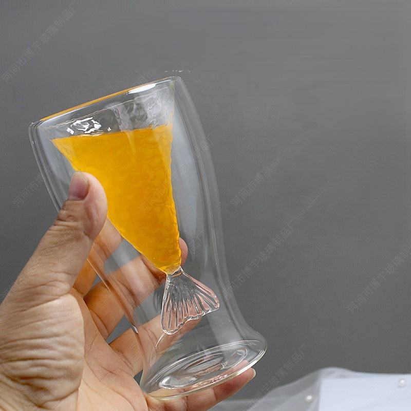 ถ้วยแก้วทรงหางปลาผนังสองชั้นทนความร้อนสุดสร้างสรรค์แก้วไวน์แดงทำจากไอศกรีมใส่น้ำผลไม้