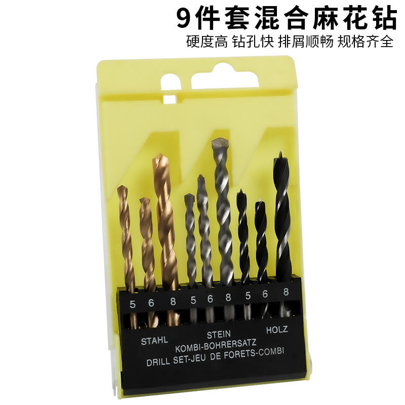 ชุด 9 ชิ้น [สว่านโลหะ, สว่านงานไม้, สว่านก่อสร้าง]