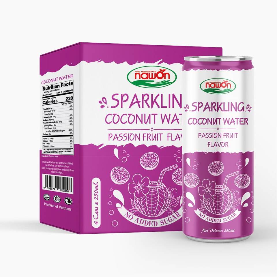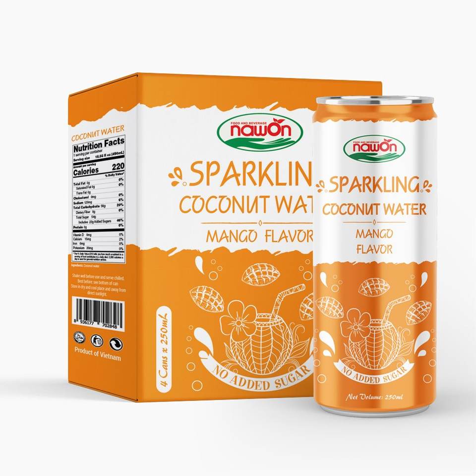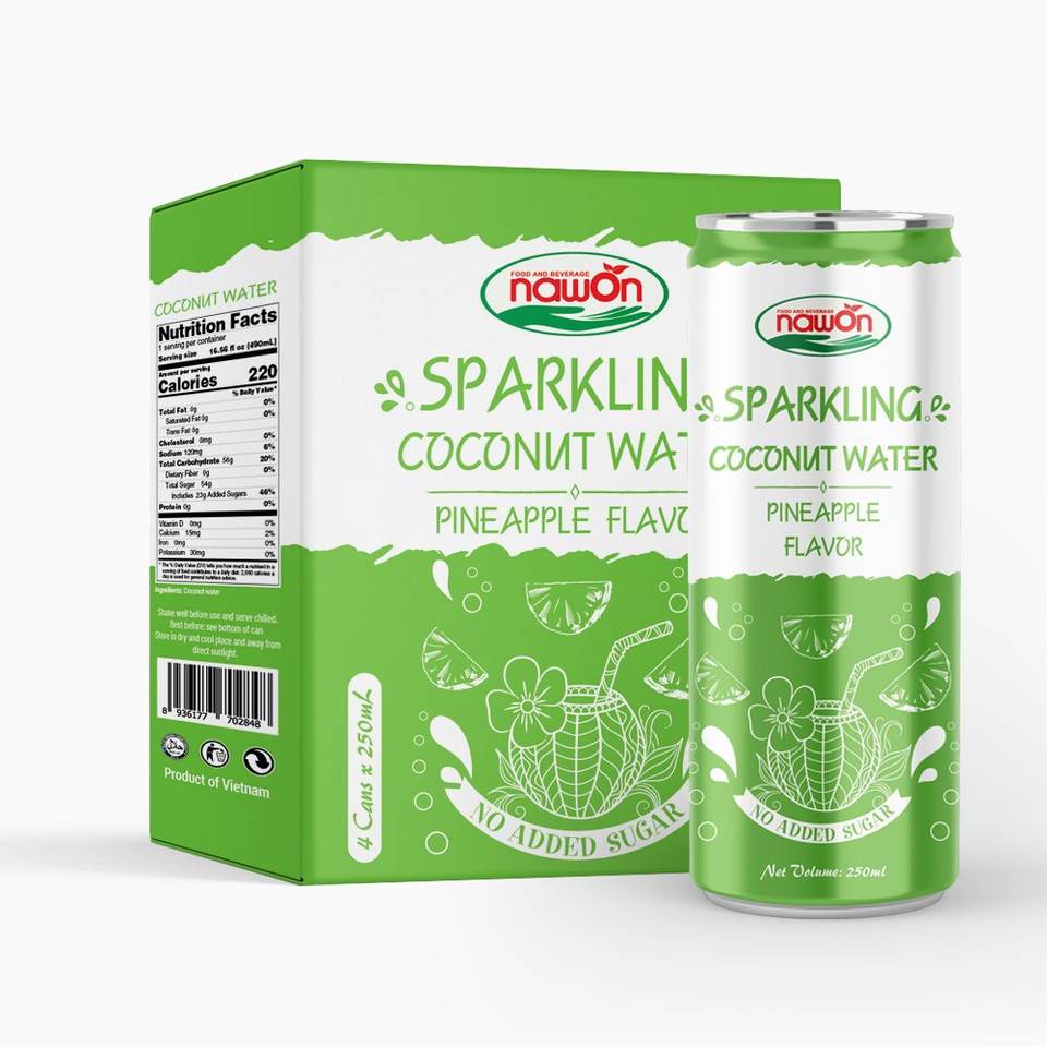 Manufacturer's Pack of 4 250ml Sparkling Coconut Water with Pineapple Flavor Featuring Carbonate as Primary Ingredient