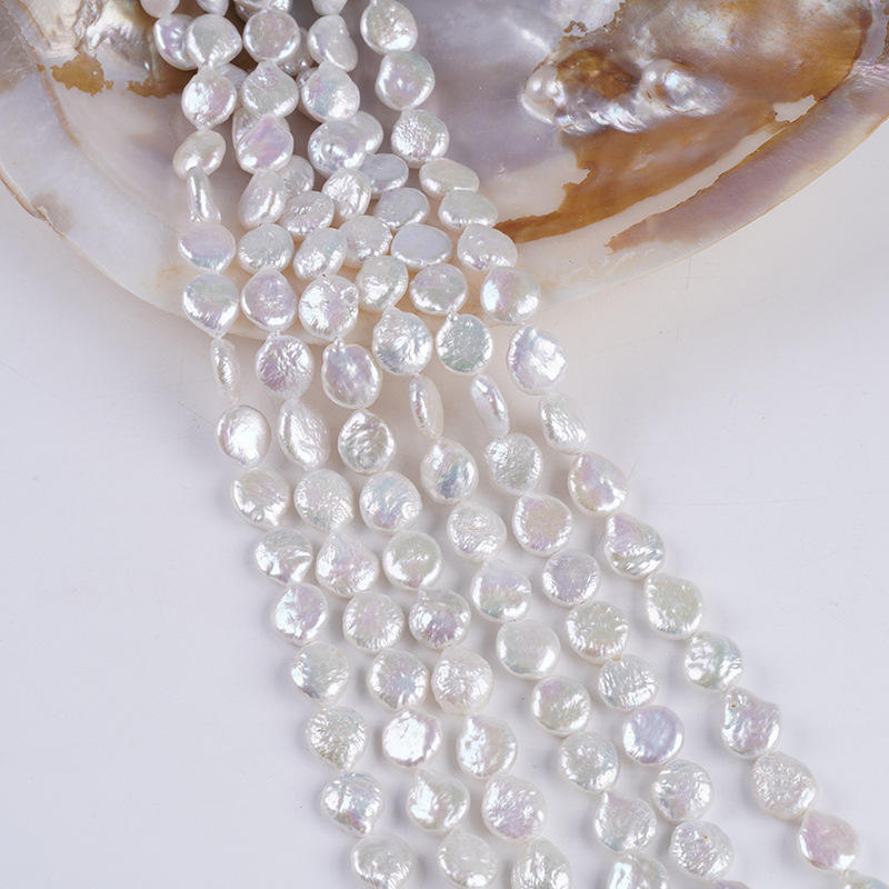 สร้อยคอมุกทรงกระดุมแบบบาโรก ขนาด 10-11 มม. ผลิตโดยผู้ผลิตโดยตรง ผลิตภัณฑ์กึ่งสำเร็จรูปจากธรรมชาติ ขายส่งแบบแยกเม็ด