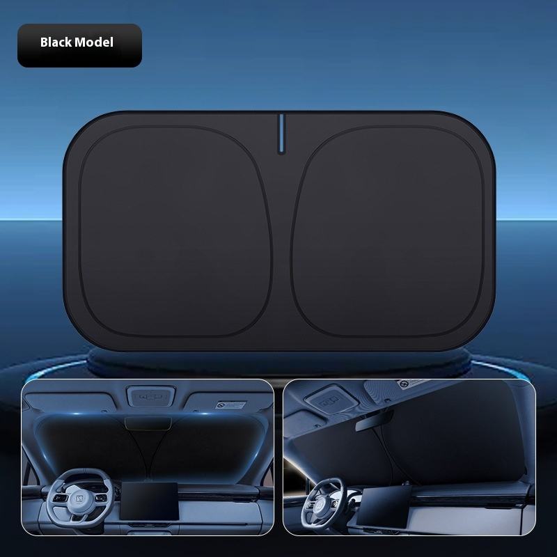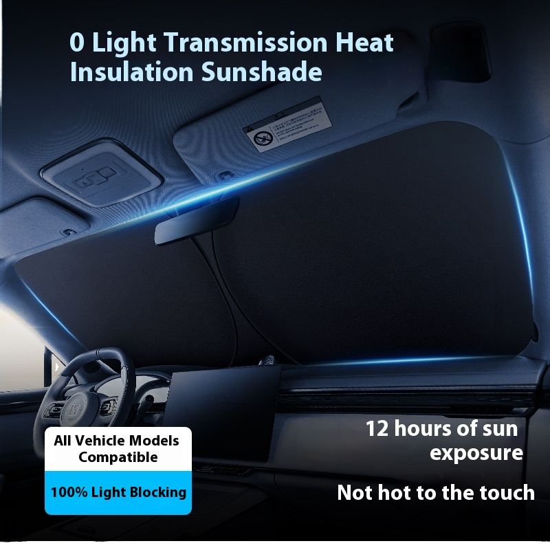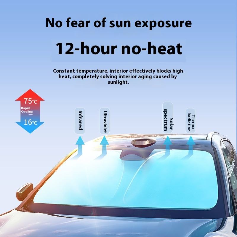 แผ่นบังแดดหน้ารถยนต์แบบพับได้ ผลิตจากไทเทเนียมสีเงิน ใช้ได้กับรถยนต์ทุกรุ่น พร้อมฉนวนกันความร้อนและช่วยระบายความร้อน