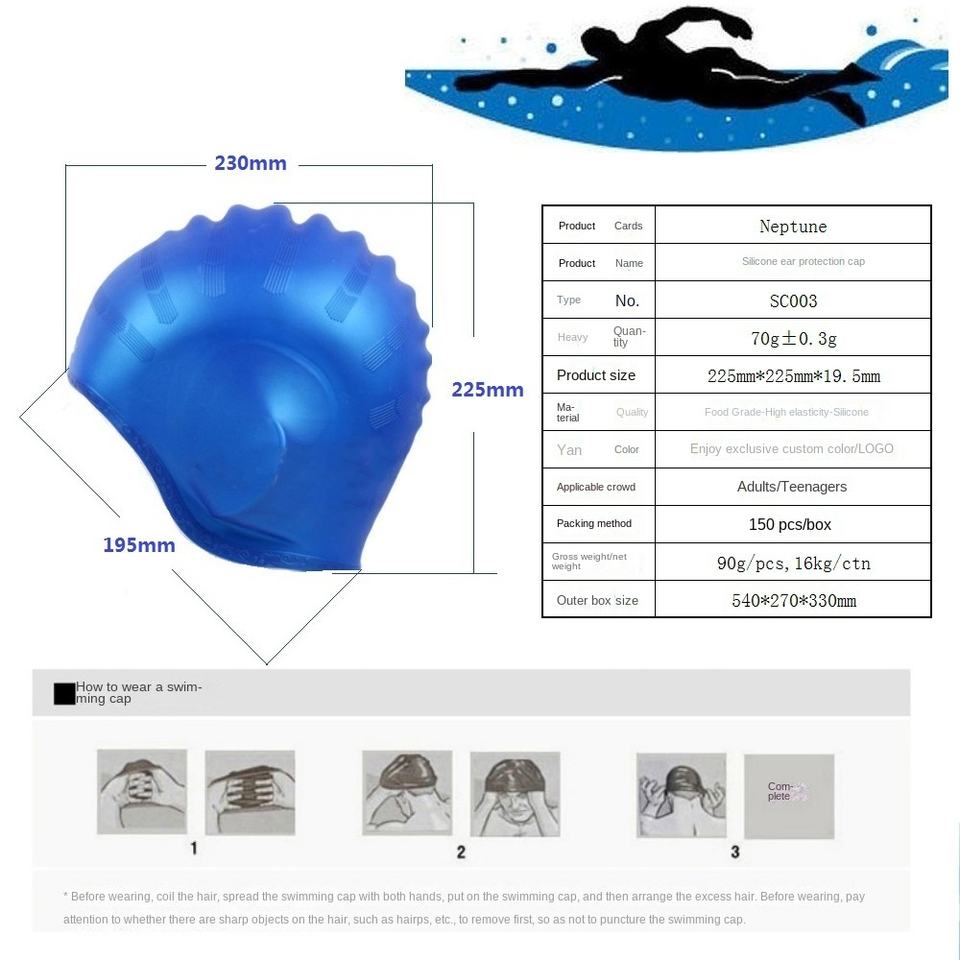 หมวกว่ายน้ำเนปจูนสำหรับผู้ใหญ่แบบยูนิเซ็กซ์ ไม่รัดศีรษะ น้ำหนักเบา กันน้ำ ป้องกันหูด้วยซิลิโคน ได้รับการรับรองมาตรฐาน CE