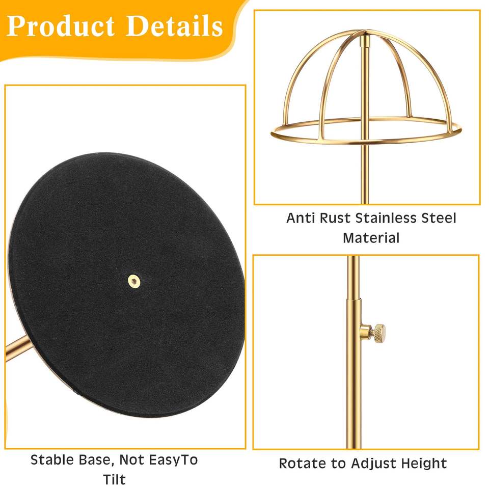 ขาตั้งโชว์หมวกสแตนเลสจากผู้ผลิต, ขาตั้งโชว์หมวกแบบปรับได้สำหรับวางบนเคาน์เตอร์, ขาตั้งหมวก 3 มิติสำหรับตกแต่งภายใน