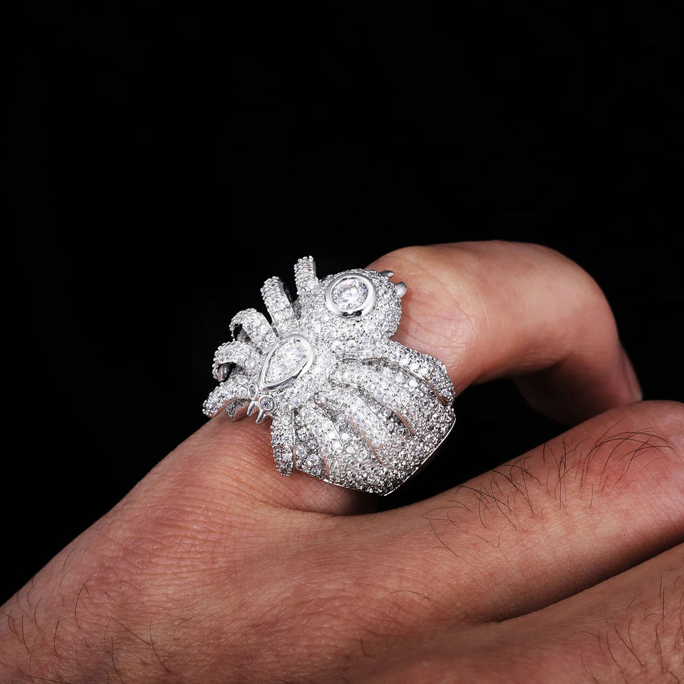 แหวนฮิปฮอปทรงแมงมุมทองคำแท้ 14k ประดับเพชรโมอิสซาไนต์แท้จากผู้ผลิต เหมาะสำหรับทั้งชายและหญิง ใช้เป็นเครื่องประดับงานแต่งงาน