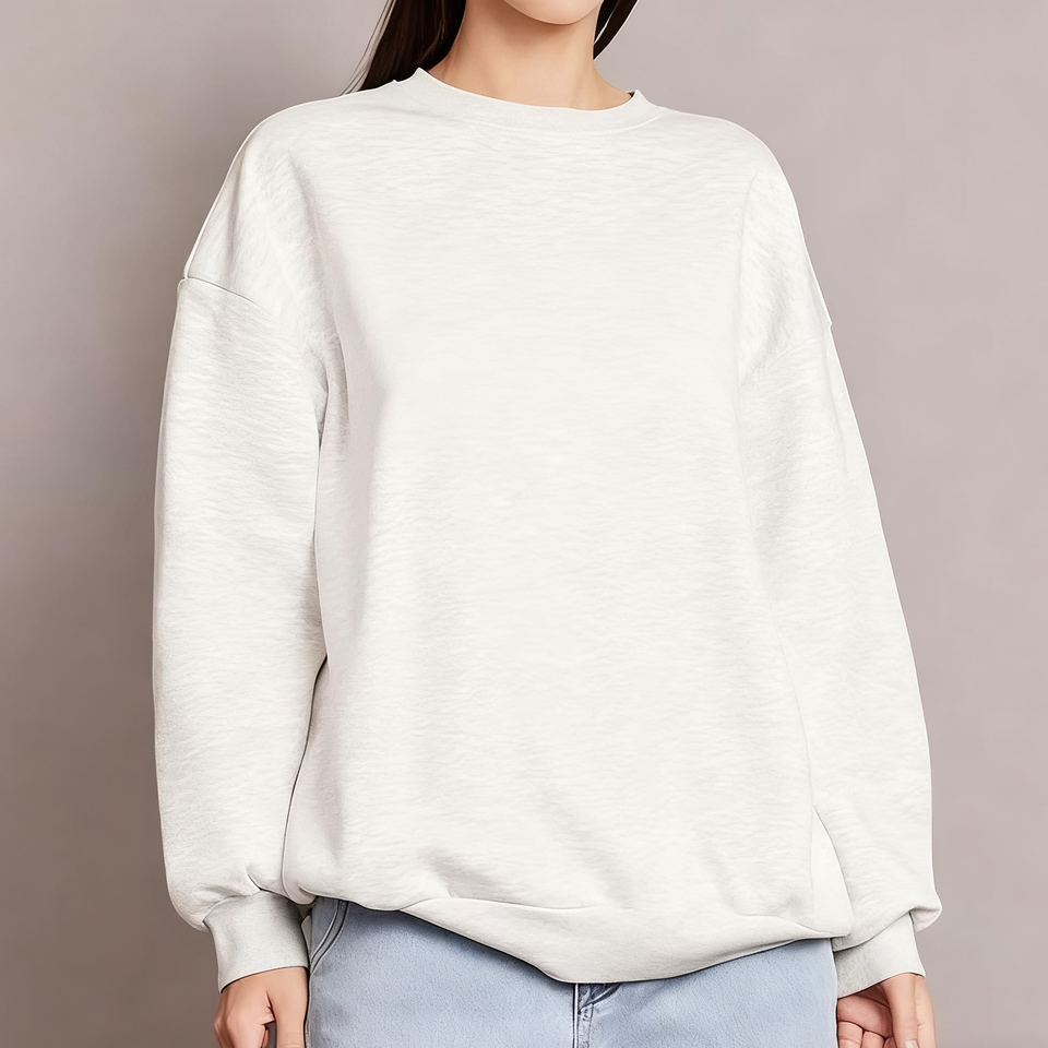 เสื้อสเวตเชิ้ตคอกลมผ้าฟลีซสำหรับผู้หญิงเสื้อสเวตเชิ้ตปักลายคอกลมผ้าคอตตอนไซส์ใหญ่พิเศษ