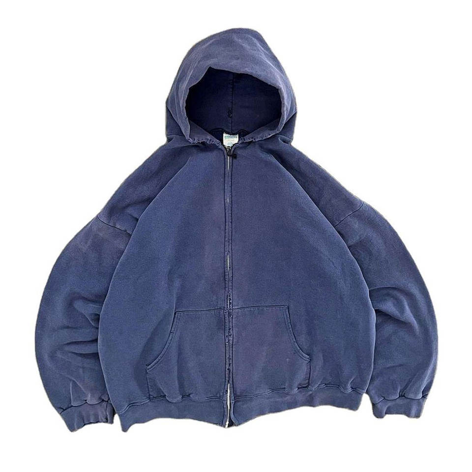 Manufacturers Custom Acid Wash Hoodie French Terry Sweatshirts Blank Vintage Double Zip Hoodie For Men