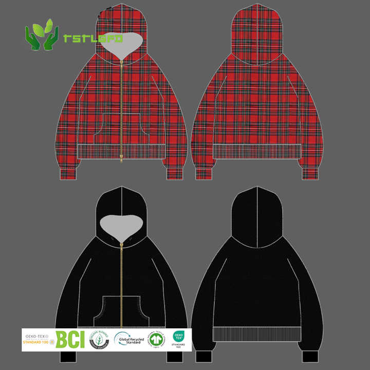 ผู้ผลิตเสื้อแจ็คเก็ตแบบสั่งทำพิเศษ สองชั้น ซิปหน้า คอตั้ง ทรงบ็อกซี่ ผ้าฟลานเนลสองชั้น 100% ผ้าฝ้าย กันน้ำด้านหน้า