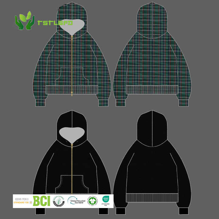 ผู้ผลิตเสื้อผ้าผู้ชายแบบสั่งทำพิเศษ ผ้าสองชั้นแบบกลับด้านได้ ซิปแบบติดตั้งด้านหน้า ทรงบ็อกซี่ ผ้าฟลานเนลสองด้าน ซิปสองด้าน ผ้าฝ้าย 100%