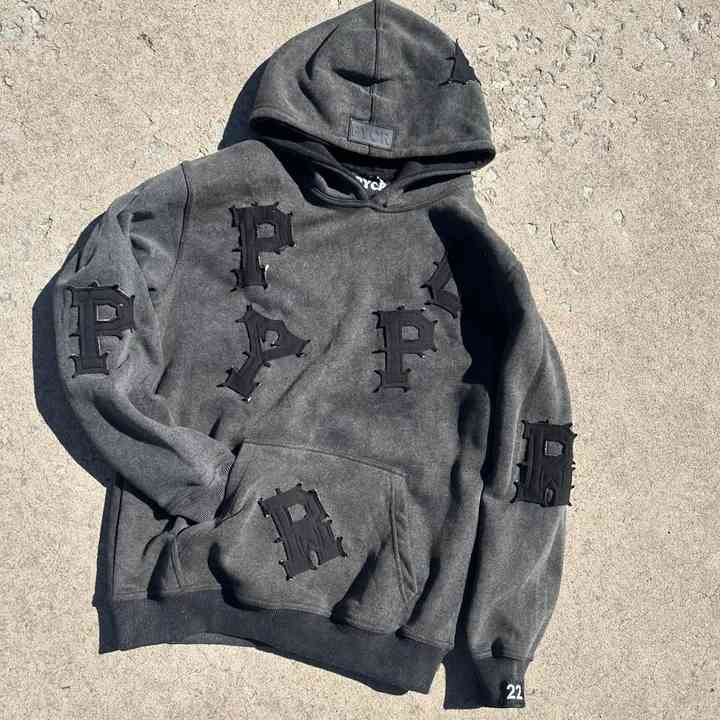 เสื้อฮู้ดซักหินมีฮู้ดผ้าซักลายโลโก้โอเวอร์ไซส์แบบกำหนดเอง