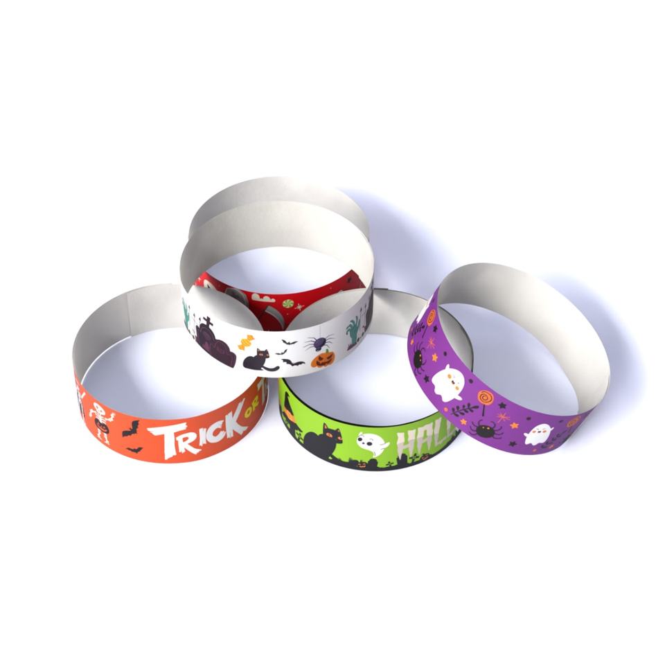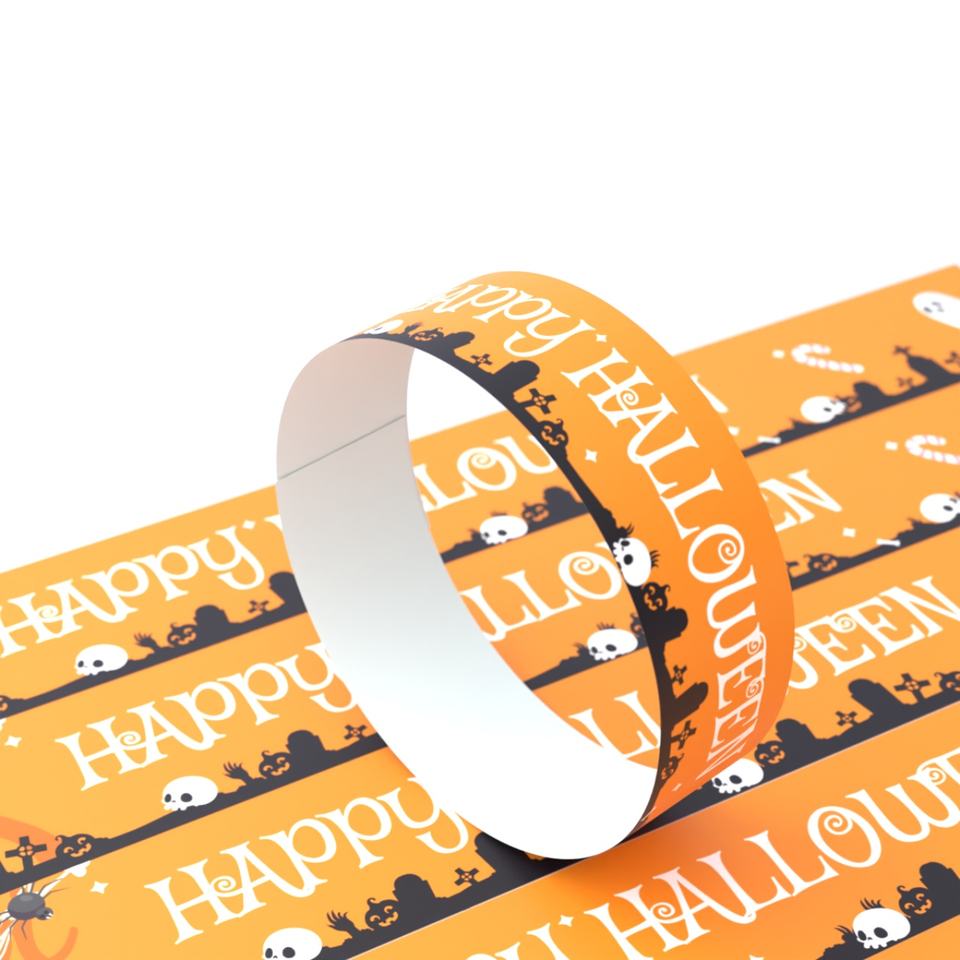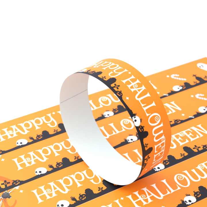 ผู้ผลิตสายรัดข้อมือกันน้ำแบบใช้แล้วทิ้งสำหรับงานปาร์ตี้เทศกาลฮาโลวีน พิมพ์แบบ Letterpress ตามสั่ง พร้อมคิวอาร์โค้ด