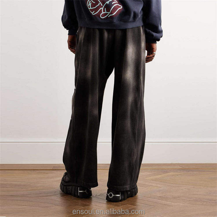 กางเกงเหงื่อพิมพ์ลายพัฟของผู้ชายซักด้วยกรดกางเกงขายาวทรงหลวมขาตรงสำหรับผู้ชาย