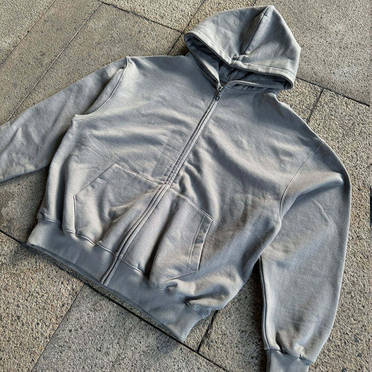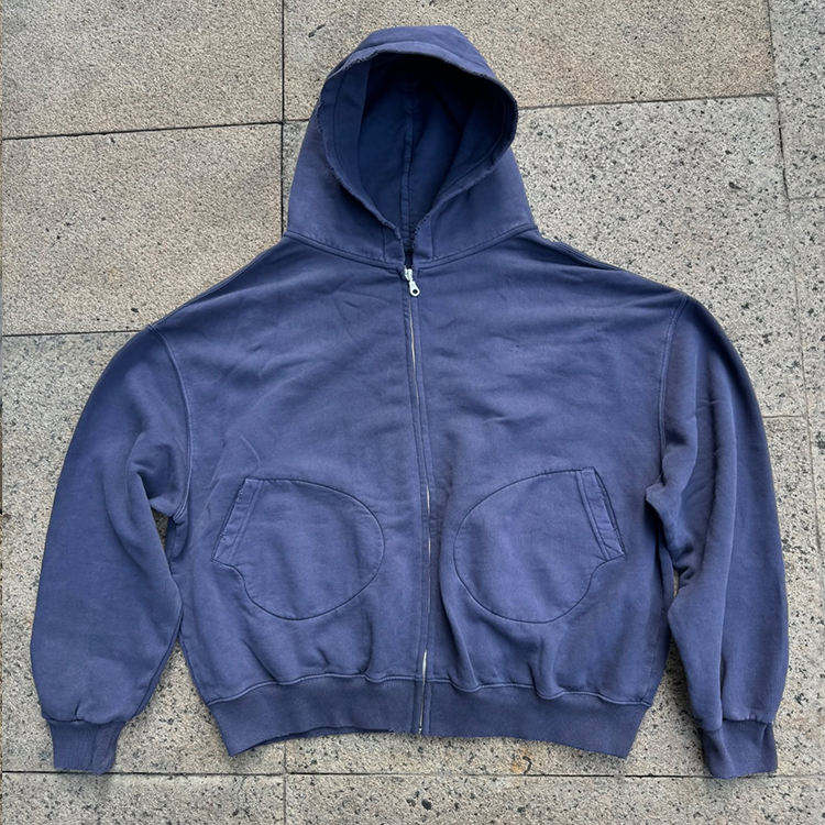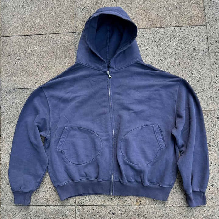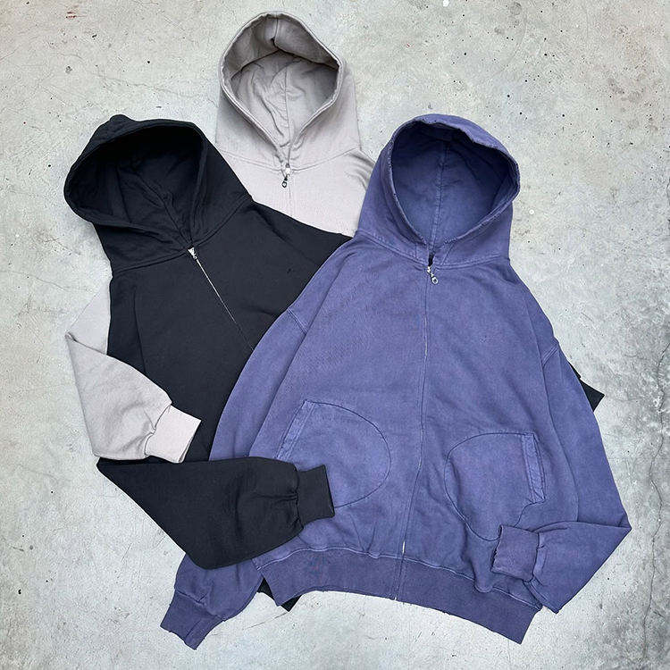 เสื้อฮู้ดดี้ผู้ชายทรงบ็อกซี่ ผ้าคอตตอน 500 แกรม ทรงหลวม ซิปหน้า ระบายอากาศได้ดี สไตล์สปริง สีพื้น รับสกรีนโลโก้ตามแบบ ผลิตโดย Manufacturers Distress Boxing Pocket