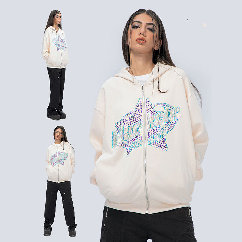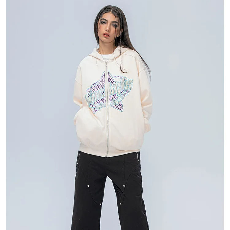 เสื้อฮู้ดดี้ทรงโอเวอร์ไซส์ ผ้าถักเนื้อฝ้าย 100% คุณภาพสูง ลายตัวอักษรฤดูหนาว ประดับด้วยคริสตัล พร้อมซับใน ปักโลโก้ สำหรับทุกเพศ
