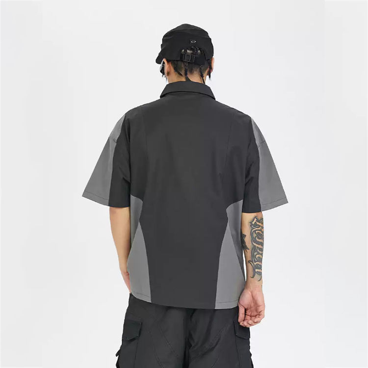 เสื้อเชิ้ตผู้ชายแขนสั้นคอปกพับได้ ผ้าฝ้าย 100% ทรงโอเวอร์ไซส์ ระบายอากาศได้ดี สไตล์ลำลอง มีซิป รับสกรีนโลโก้ตามแบบ