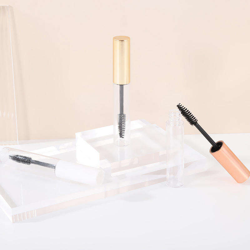 ผู้ผลิตจัดหาบรรจุภัณฑ์หลอดมาสคาร่า PET ทรงกลมใสขนาด 10 มล. ขวดบรรจุภัณฑ์เครื่องสำอางสำหรับขนตาคุณภาพสูงพร้อมฉลาก