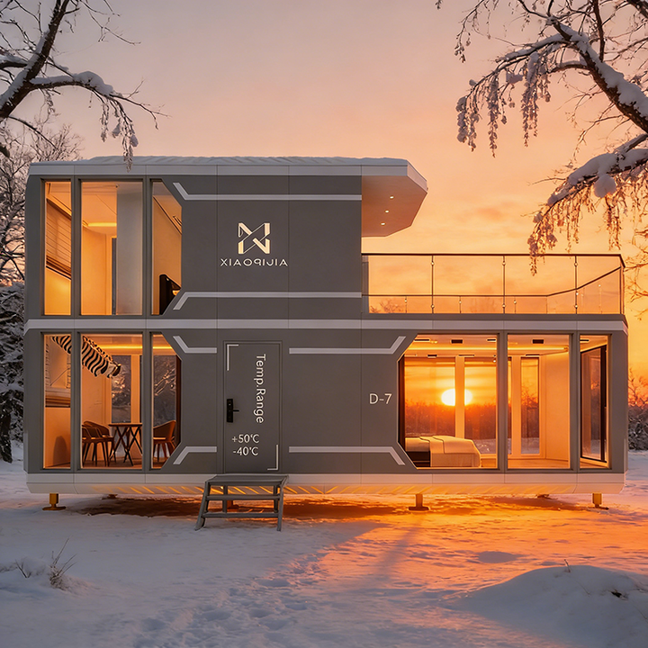 บ้านสำเร็จรูปสองชั้นจากตู้คอนเทนเนอร์ บ้านโมดูลาร์ขนาดเล็กเป็นมิตรกับสิ่งแวดล้อม บ้านตู้คอนเทนเนอร์พร้อมห้องน้ำและฝักบัว