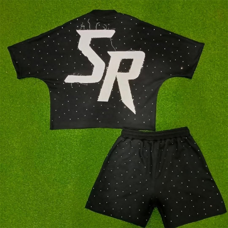 เสื้อยืดลายฮิปฮอปไซส์พิเศษสำหรับผู้ชายเสื้อยืดลายกรดคอกลมประดับพลอยเทียมสำหรับเสื้อผ้าตามสั่ง