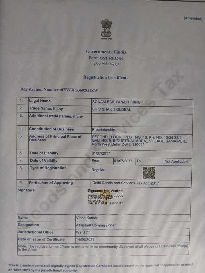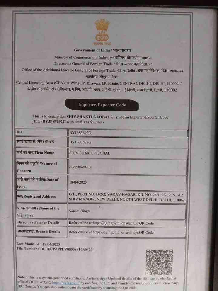 SHIV SHAKTI GLOBALชื่อแบรนด์