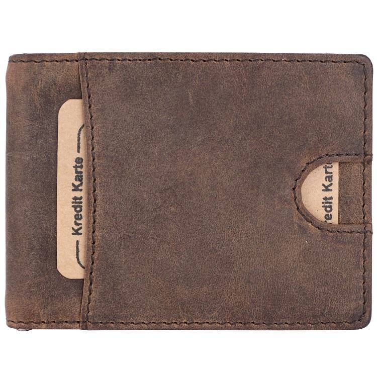 กระเป๋าสตางค์ผู้ชายหนังแท้สไตล์วินเทจฮันเตอร์ความยาวสั้นป้องกัน RFID บุผ้าฝ้ายผู้ซื้อจำนวนมาก