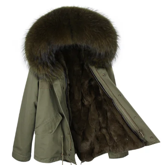 Maomaokong เสื้อคลุมกันหนาวขนกระต่าย, เสื้อคลุมกันหนาวตัวยาวผ้าวูลระบายอากาศได้ดีมีซิปปิดลายพราง
