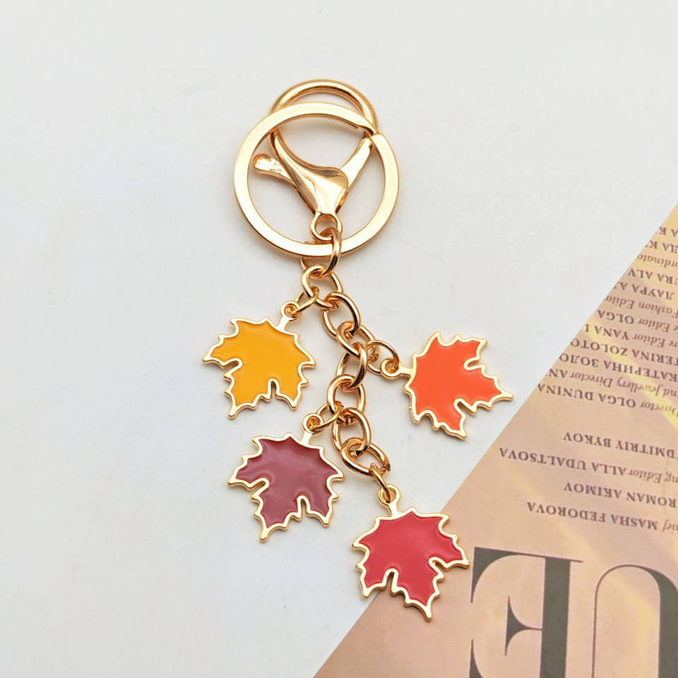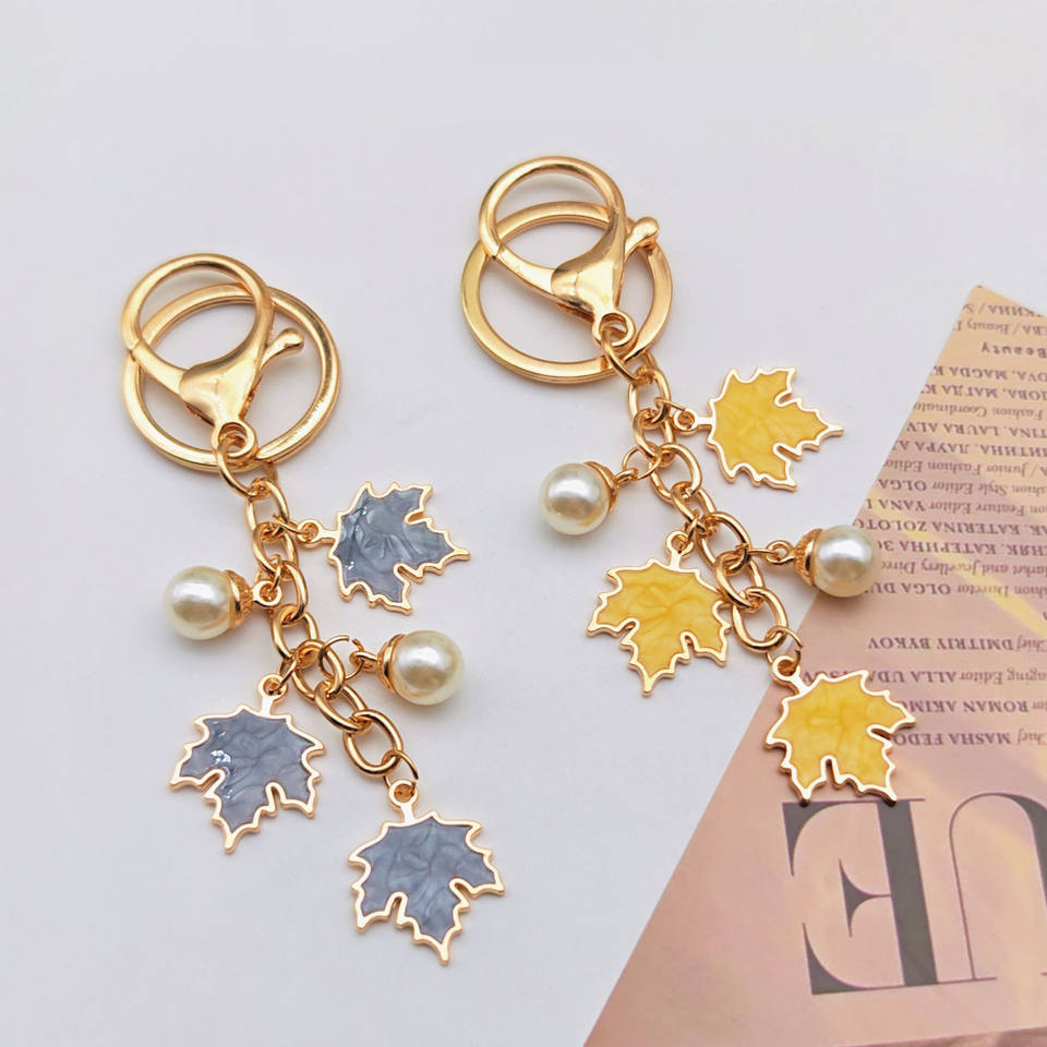 พวงกุญแจรูปใบเมเปิ้ลทำมือประดับมุก ตกแต่งกระเป๋า ใส่เคสหูฟัง จี้น่ารัก