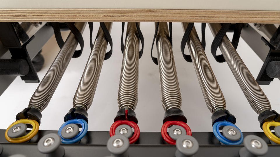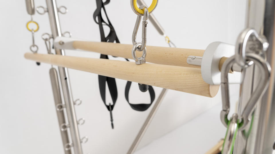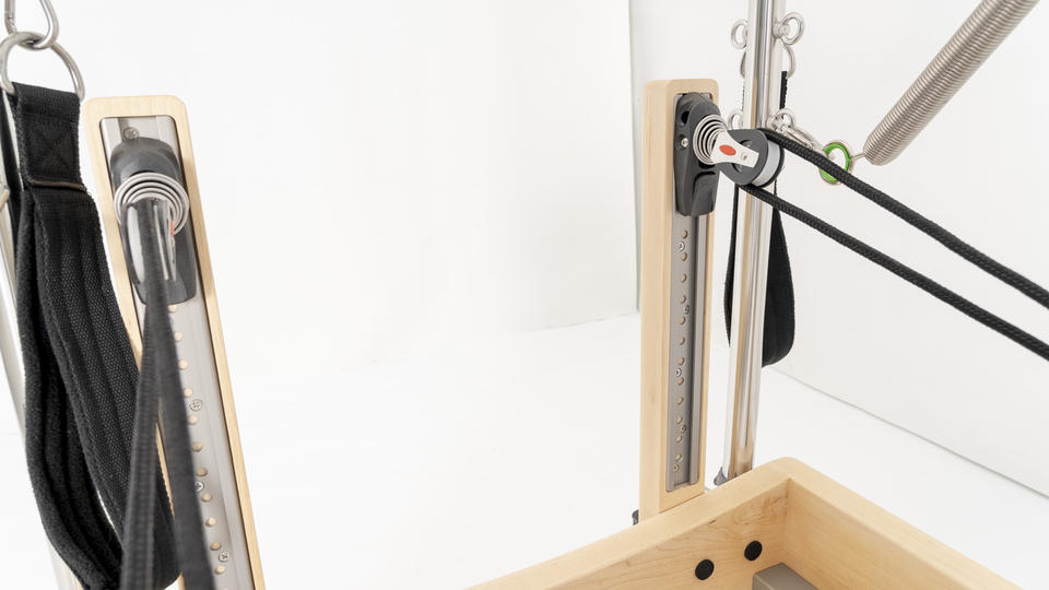 เครื่องพิลาทิสรีฟอร์มเมอร์ทรงครึ่งสี่เหลี่ยมคางหมู ทำจากไม้เมเปิ้ล สำหรับใช้ในสตูดิโอและที่บ้าน คุณภาพสูง ดีไซน์กะทัดรัด