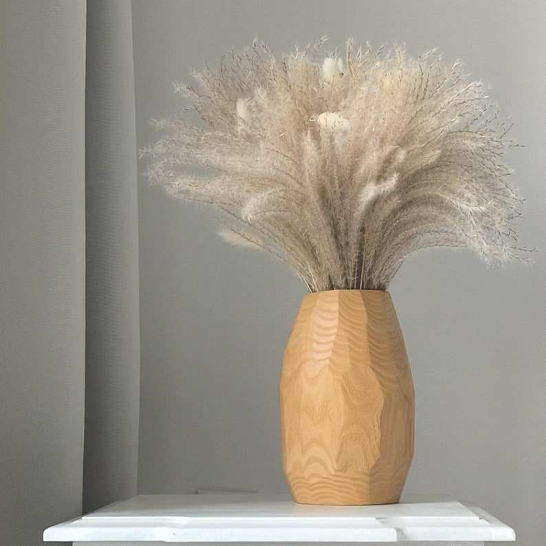 Rustic Modern Maple Wooden Vase for Dried Flowers Decorative Minimal Contemporary Floral Accent