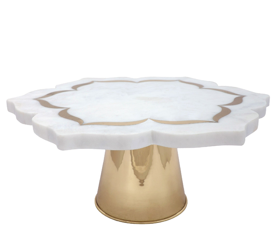 แท่นวางเค้กหินอ่อนรูปทรงดอกไม้พร้อมฐานทองเหลืองสำหรับตกแต่งงานเลี้ยงวันเกิดสำหรับใช้ในบ้านในโรงแรม