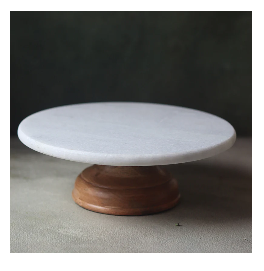 แท่นวางเค้กหินอ่อนรูปทรงกลมฐานไม้งานฝีมือสำหรับขนมทำจากหินอ่อนรูปทรงกลม
