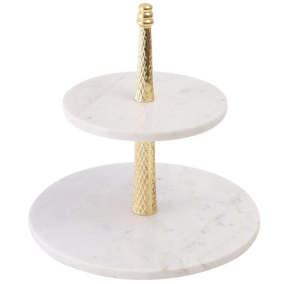 แท่นวางเค้กหินอ่อนมือจับทองเหลืองสำหรับงานเลี้ยงวันเกิด2ชั้นของตกแต่งเค้กของหวานคัพเค้กผลไม้