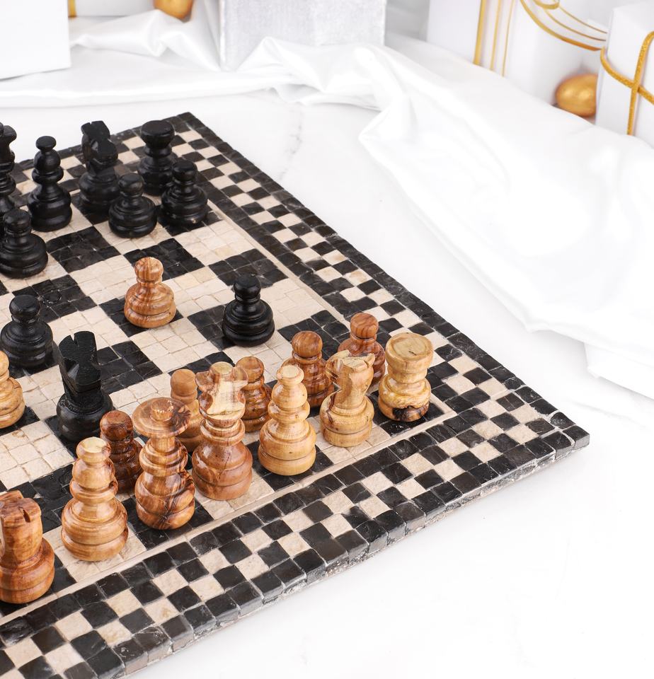 ชุดหมากรุกไม้มะกอกพร้อมหมากรุกไม้/กระดานหมากรุกไม้มะกอกทำด้วยมือ/CG013ศิลปะ