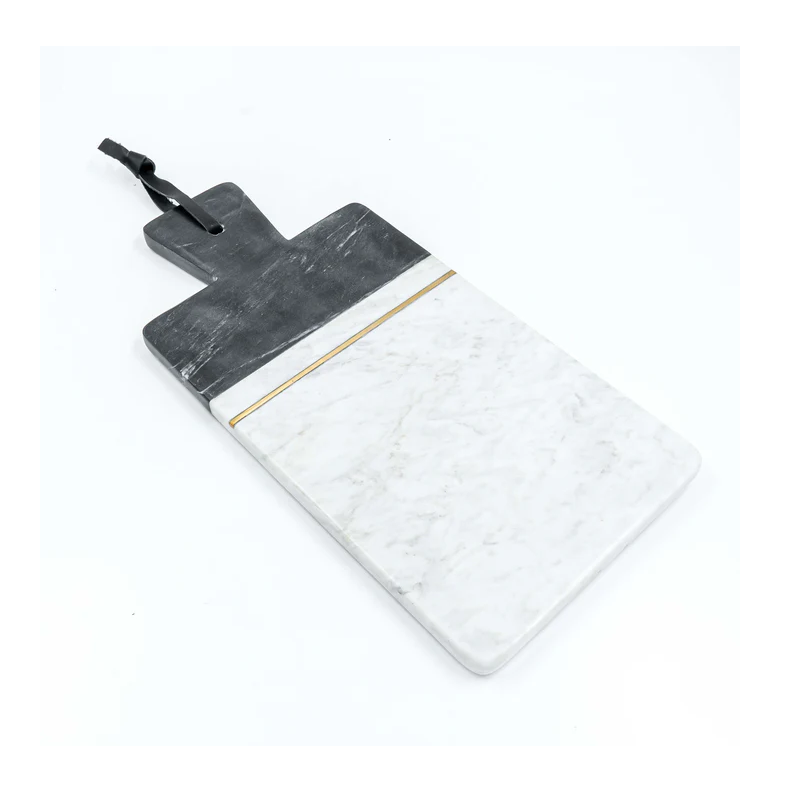 เขียงหินอ่อนสีเทาและขาว ลายเส้นทองเหลือง สายหนัง รักษ์โลก ใช้กับเครื่องล้างจานได้ รูปทรงสี่เหลี่ยม