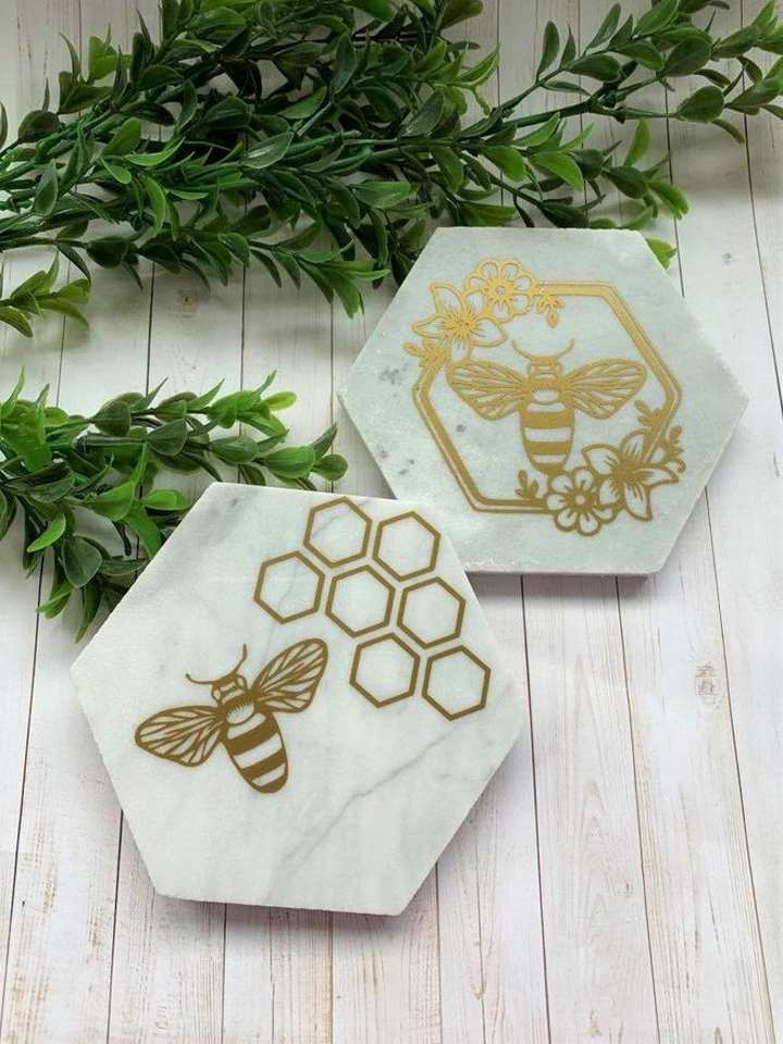 ชุดที่รองแก้วหินอ่อนพร้อมหวีรองแก้วลายดอกไม้หวีน้ำผึ้ง