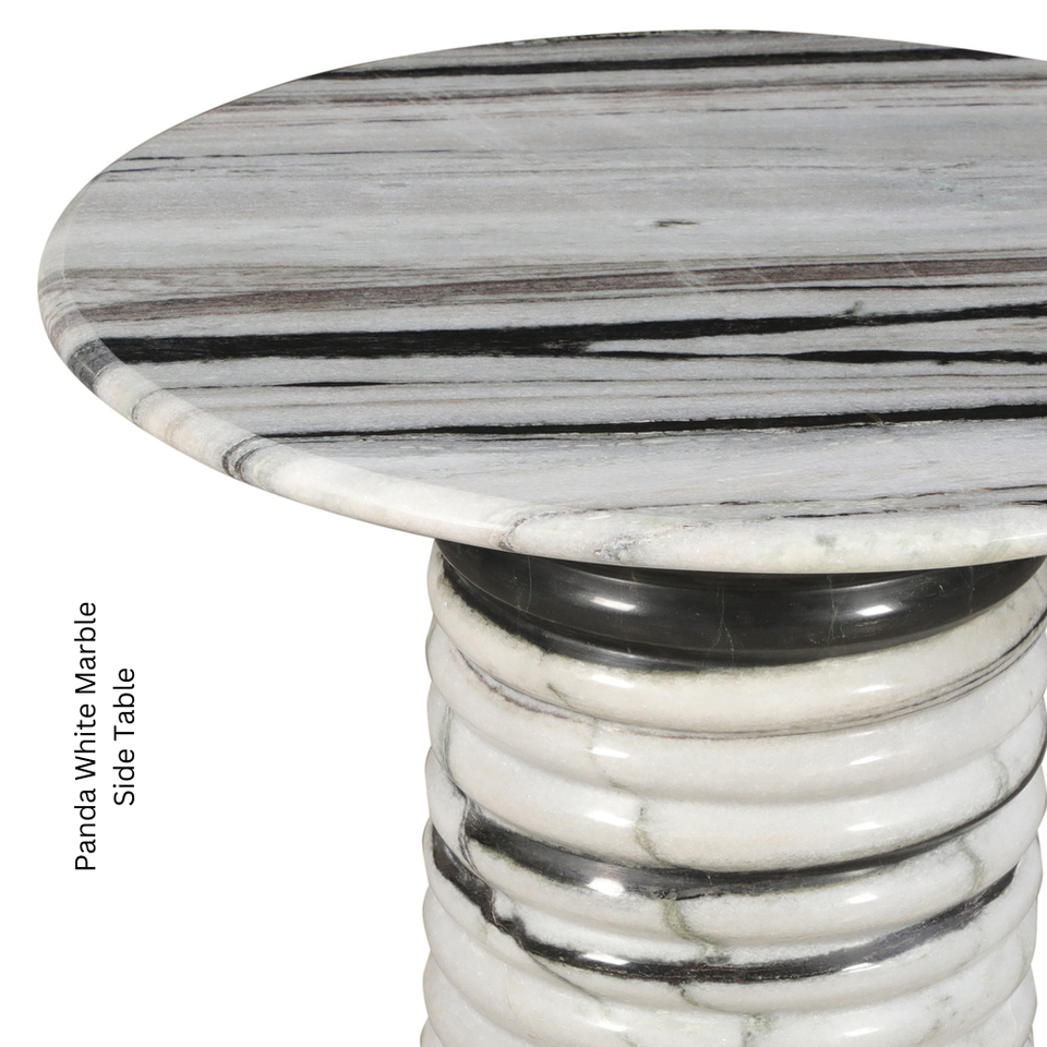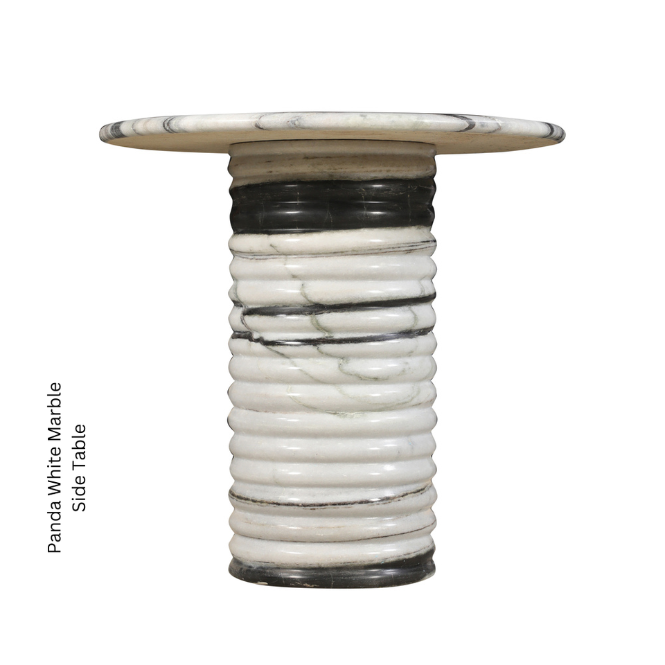 โต๊ะข้างเตียงทรงกระบอกหินอ่อน โต๊ะข้างทันสมัย ฐานทรงกระบอกลายริ้ว ทำมือ เฟอร์นิเจอร์ห้องนอนหรูหรา เฟอร์นิเจอร์โรงแรม ห้องนั่งเล่น