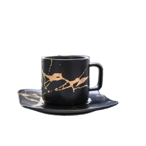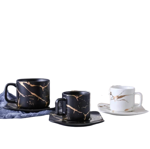 ถ้วยชาเซรามิกลายหินอ่อนถ้วยชาหินอ่อนสีดำและสีขาวถ้วยหินหินอ่อนสุดหรู