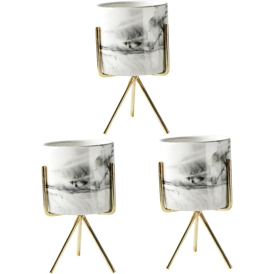 แจกันดอกไม้โลหะเคลือบเคลือบสีทองดีไซน์หินอ่อนหรูหราการจัดดอกไม้ที่สวยงามสำหรับกระถางต้นไม้ในบ้าน