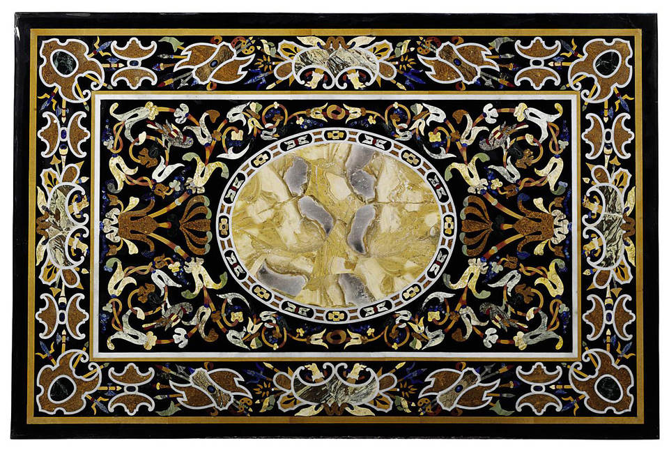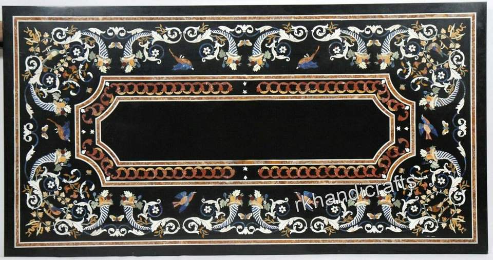 Marble Dining Table Top Pietra Dura Micro Mosaic Inlaid for Home or Hotel Luxury Stone Furniture Elegant Black