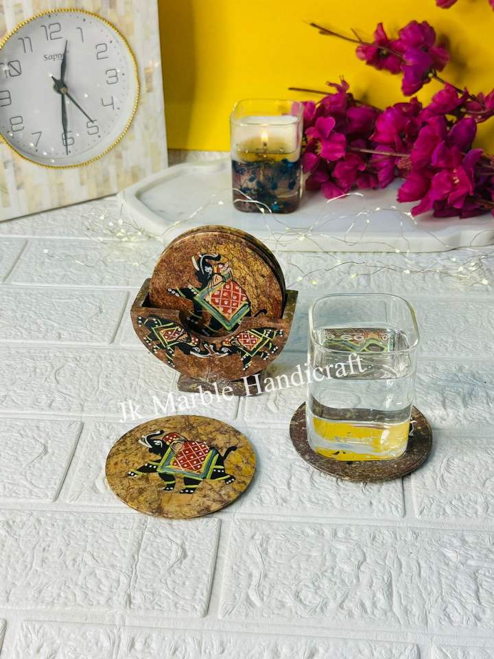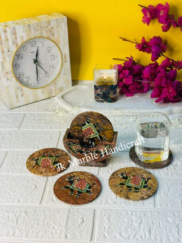 ชุดที่รองแก้วลายช้างหินอ่อนราคาดีที่สุดสำหรับห้องรับประทานอาหารงานหัตถกรรมหินสไตล์ทางศาสนาสำหรับโรงแรมห้องครัว