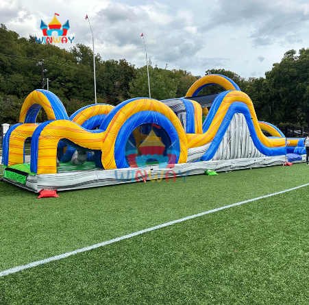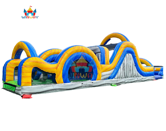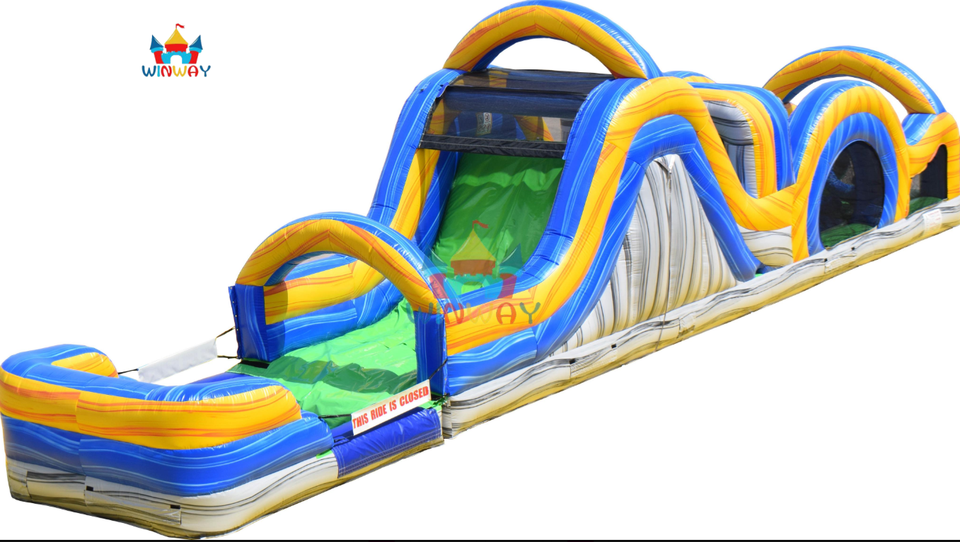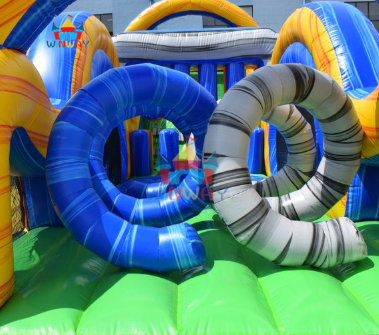 เครื่องเล่นเป่าลมกลางแจ้งขนาดใหญ่ รูปทรงหินอ่อน สีสันสดใส พร้อมสไลเดอร์และสระน้ำ