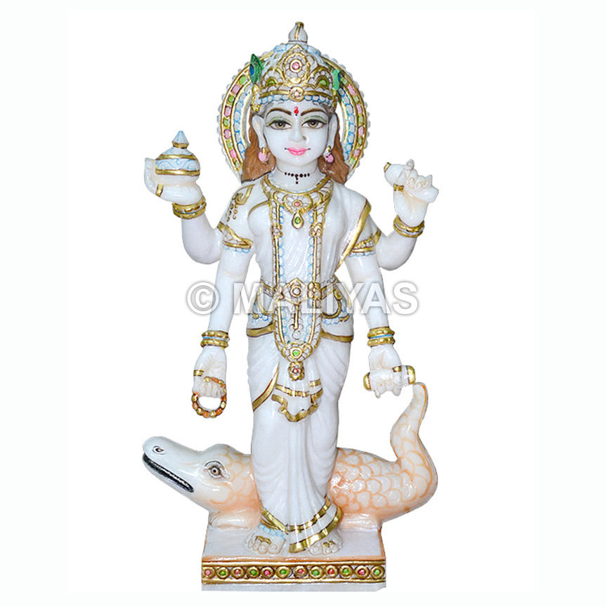 รูปปั้นเทพีแกงกาทำจากหินอ่อน | รูปปั้นกังกามา มูรตีพร้อมมาการ่า - มาลียาส