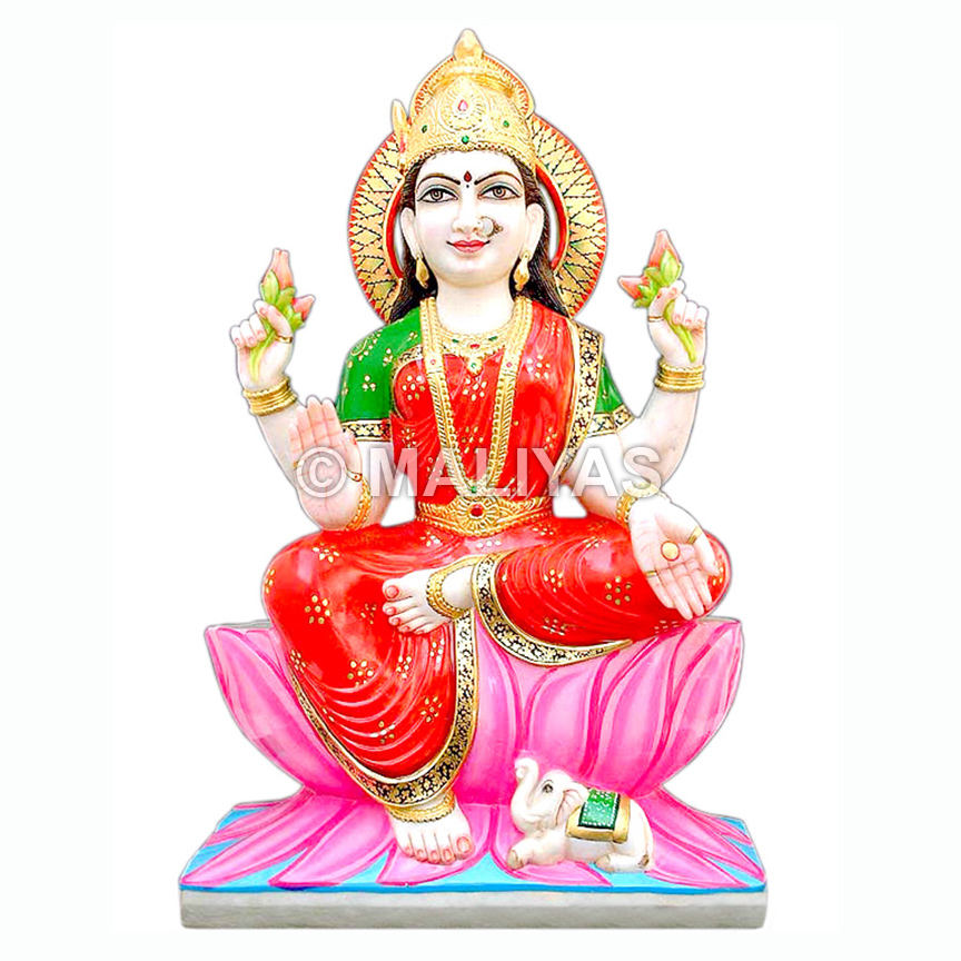 รูปปั้นเทพีลาคสมีทำจากหินอ่อน | พระลักษมีหินอ่อนแกะสลักด้วยมือสำหรับบ้านและวัด – มาลียาส