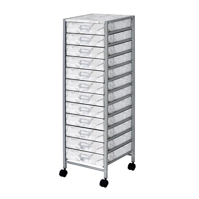 รถเข็นกระดาษลายหินอ่อน 6 ลิ้นชัก สีเงิน/ดำ ชั้นวางของอเนกประสงค์ทันสมัย
