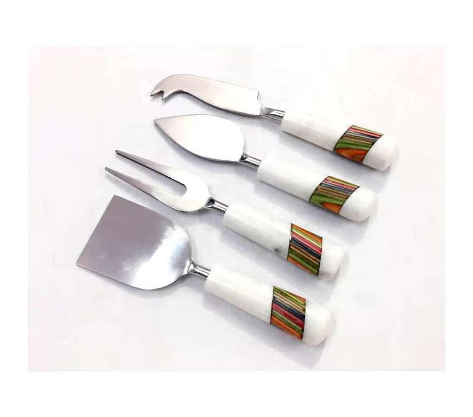 ชุดมีดหั่นชีสสแตนเลสสีเงินพร้อมด้ามหินอ่อนเครื่องมือสลัด