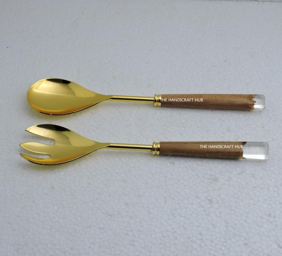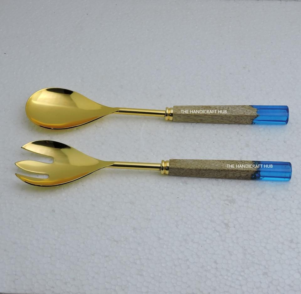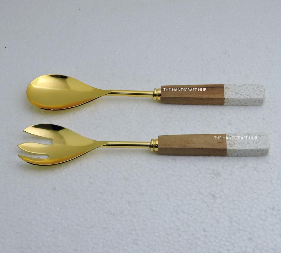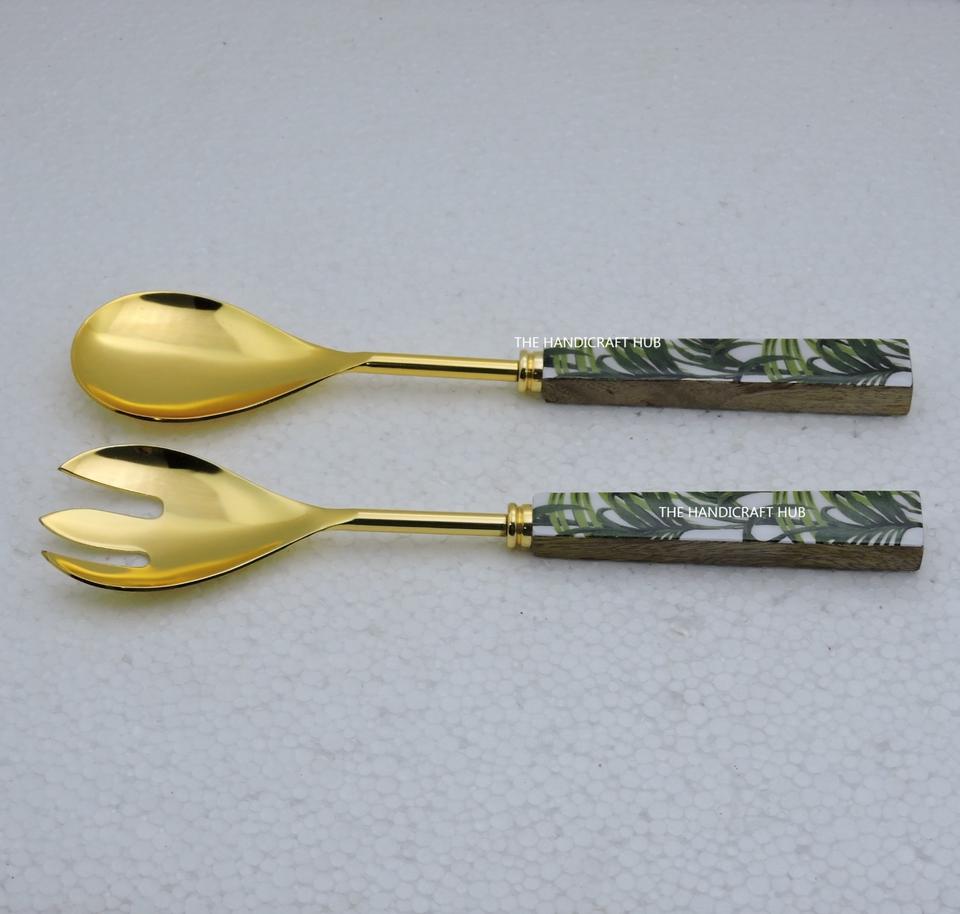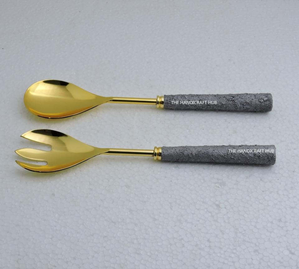 ชุดอุปกรณ์เสิร์ฟสลัด ด้ามหินอ่อน สแตนเลส สีดำ พร้อมส้อมและช้อน