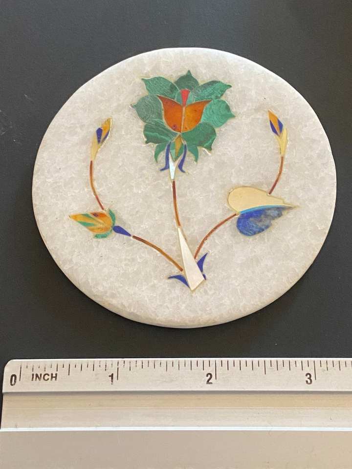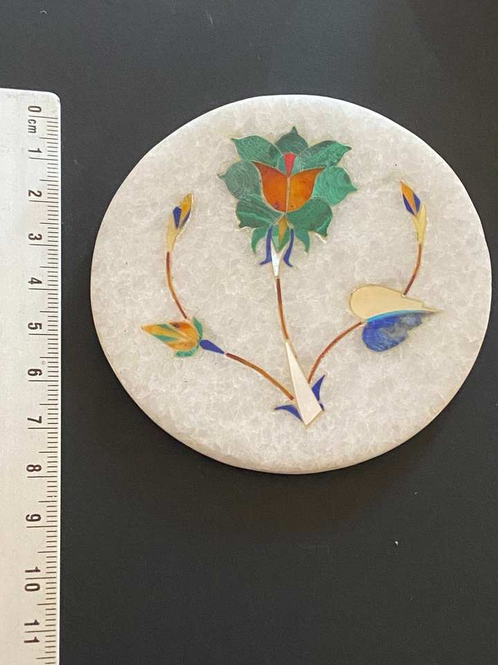 Marble Inlaid Coasters Malachite Stone Lapis Lazuli Flower White Marble Base Vintage Luxury Round Set